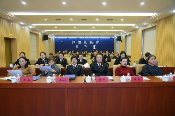 為深入推動鄂溫克族自治旗人民檢察院檢察工作高質(zhì)量發(fā)展,客觀公正評價各部門和中層以上干部工作業(yè)績,加強隊伍監(jiān)督管理,2025年1月13日下午,旗人民檢察院召開2024年度環(huán)節(jié)干部述職述廉工作會議,聽取并評議各部門環(huán)節(jié)干部述德述職述廉報告,全面考核各部門政治思想建設、工作實績、黨風廉政建設、作風建設等情況,研究探索新時代基層檢察工作新思路。會議邀請了巴彥托海鎮(zhèn)人大主席陶英、伊敏蘇木人大主席牡丹、旗司法局綜合保障中心主任烏蘭哈斯、旗亞龍建安商貿(mào)有限公司經(jīng)理楊靜4名代表、委員到會指導。