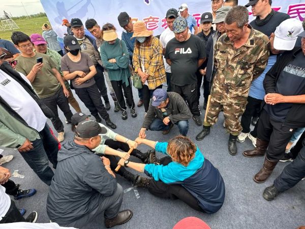 在搏克比賽場地,搏克手揮舞著壯實的雙臂紛紛入場,他們兩兩對決,時而扎穩(wěn)馬步,時而靈活移動,充分展現(xiàn)了具有濃郁民族特色的蒙古式搏克風(fēng)貌。