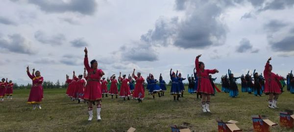 夏日的巴彥塔拉草原陽光明媚,景色宜人,活動現(xiàn)場彩旗飛舞、熱鬧非凡,開幕式在大型歌舞《牧民歌唱共產(chǎn)黨》中拉開序幕,女聲獨唱《嫩江四季歌》、兒童歌舞表演《夸山羊》等節(jié)目點燃了現(xiàn)場觀眾的熱情。除本地傳統(tǒng)歌舞,開幕式文藝演出還特邀京港澳青少年音樂藝術(shù)嘉年華為現(xiàn)場演奏樂曲,引得圍觀群眾的陣陣喝彩。