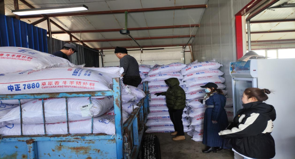 飼料發(fā)放現(xiàn)場,嘎查“兩委”班子成員為前來領取抗災飼料的牧民群眾登記、核對、搬運飼料,牧民們有序地裝車、拉運,現(xiàn)場一片忙碌景象。發(fā)放飼料一定程度上減輕牧民經濟負擔,保障畜牧業(yè)生產持續(xù)穩(wěn)定健康發(fā)展。