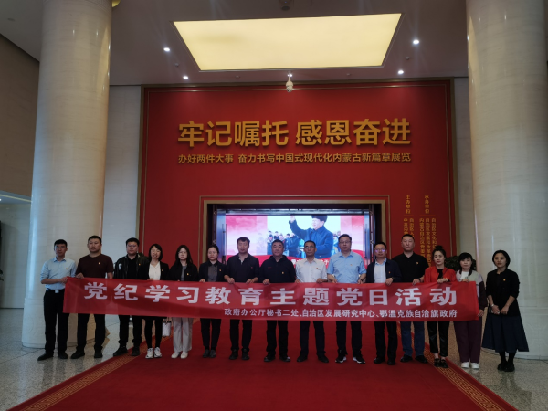 4月17日,鄂溫克族自治旗人民政府機關黨支部赴呼和浩特與自治區(qū)政府辦公廳秘書二處黨支部及自治區(qū)發(fā)展研究中心黨支部聯合開展黨紀學習教育主題黨日。自治區(qū)政府辦公廳秘書二處處長、黨支部書記白中海,自治區(qū)發(fā)展研究中心主任溫占茂、旗委副書記、旗長敖慧然,旗委常委、副旗長鹿傳深,旗政府辦公室主任、機關黨支部書記劉小凡參加活動。