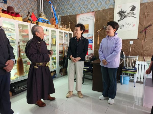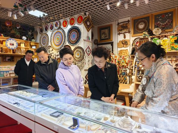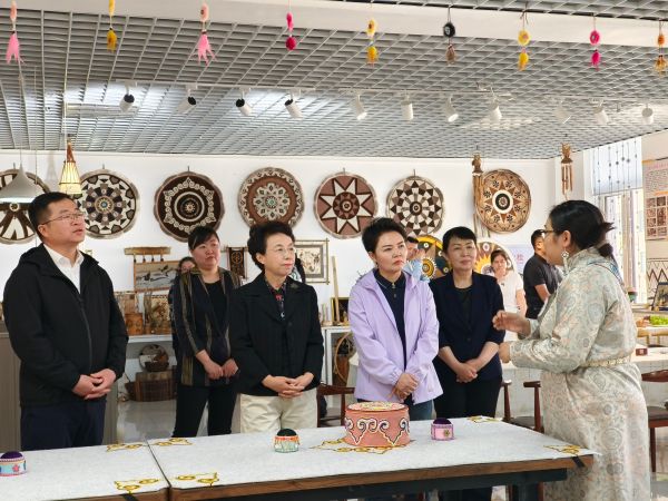 “法制宣傳邊關(guān)行”一行人員赴鄂溫克族自治旗民族文化創(chuàng)業(yè)園,先后走進(jìn)呼倫貝爾市烏力吉傳統(tǒng)手工藝發(fā)展有限責(zé)任公司、特榮民族文化傳媒有限公司和鄂溫克族自治旗太陽(yáng)姑娘文化發(fā)展有限公司,對(duì)3家少數(shù)民族僑胞創(chuàng)立的企業(yè)進(jìn)行調(diào)研。在調(diào)研過(guò)程中,詳細(xì)了解各企業(yè)經(jīng)營(yíng)狀況、發(fā)展規(guī)劃以及面臨的困難和問(wèn)題。在太陽(yáng)姑娘工作室,各級(jí)僑聯(lián)領(lǐng)導(dǎo)與負(fù)責(zé)人艾吉瑪親切座談,詳細(xì)了解太陽(yáng)花文創(chuàng)產(chǎn)品的生產(chǎn)、銷售與傳承發(fā)展情況,強(qiáng)調(diào)要進(jìn)一步推動(dòng)非遺與產(chǎn)業(yè)融合,助力地方經(jīng)濟(jì)發(fā)展與文化傳承。中國(guó)僑聯(lián)副主席程紅對(duì)僑胞們?cè)趥鞒泻桶l(fā)展民族文化產(chǎn)業(yè)方面所做出的努力給予了充分肯定,并鼓勵(lì)他們繼續(xù)發(fā)揮自身優(yōu)勢(shì),不斷創(chuàng)新發(fā)展,為地方經(jīng)濟(jì)發(fā)展和民族文化繁榮作