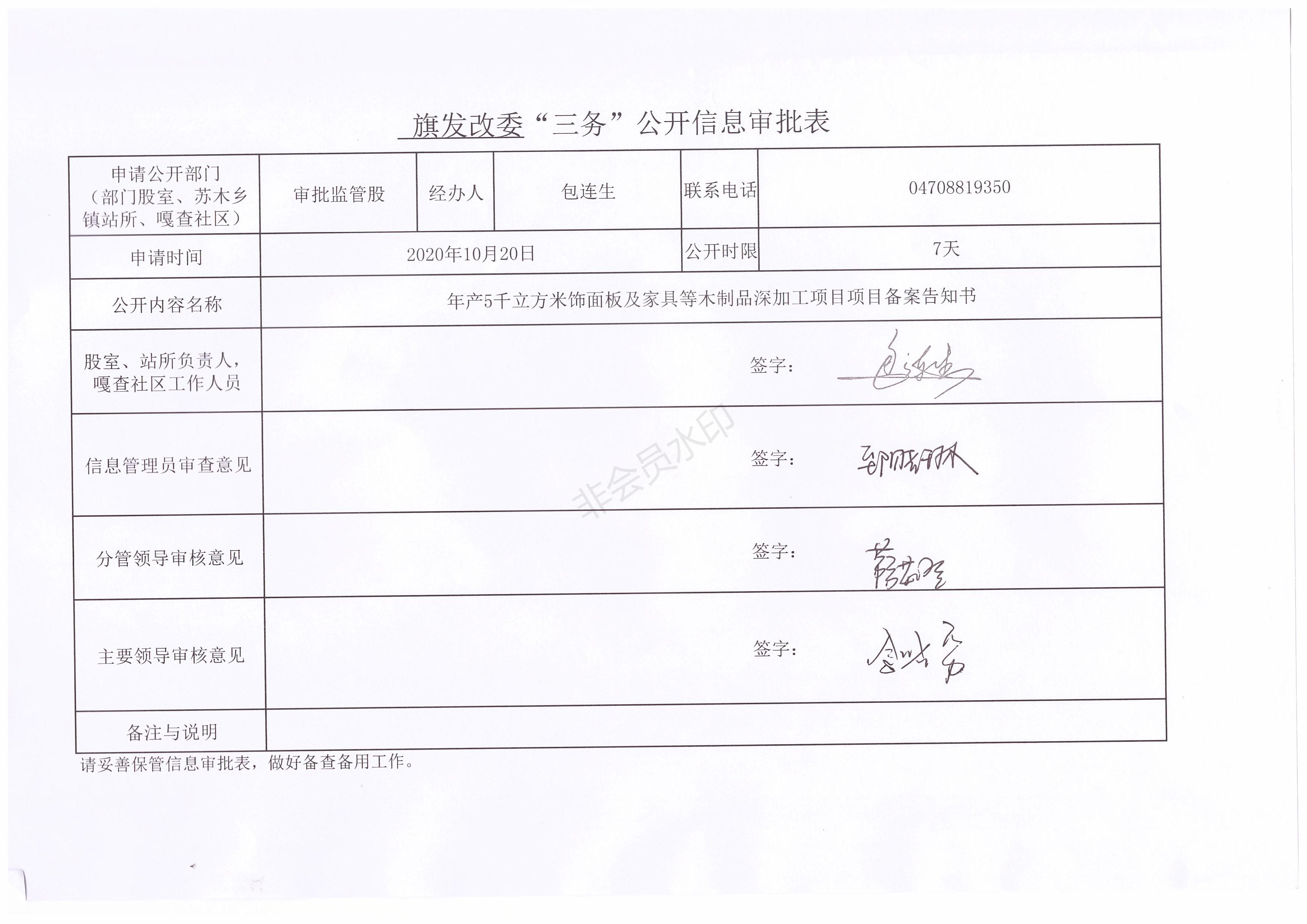 經(jīng)核查,你單位申請(qǐng)備案的 年產(chǎn)5千立方米飾面板及家具等木制品深加工項(xiàng)目 項(xiàng)目,符合產(chǎn)業(yè)政策和市場準(zhǔn)入標(biāo)準(zhǔn),準(zhǔn)予備案。請(qǐng)據(jù)此開展有關(guān)工作。在開工建設(shè)前,應(yīng)當(dāng)辦理法律法規(guī)要求的其他手續(xù),方可開工。特此告知!