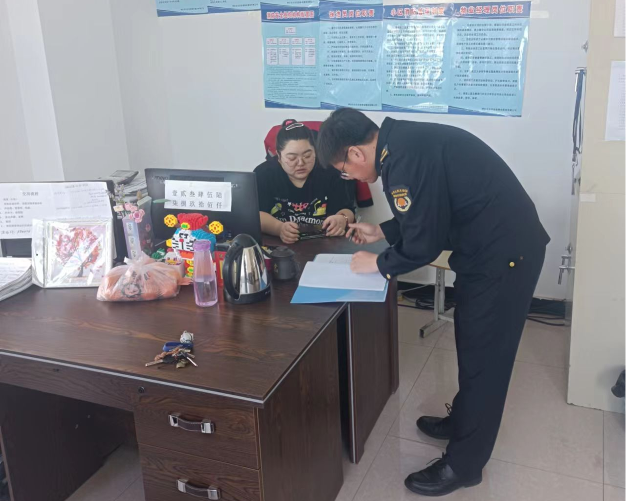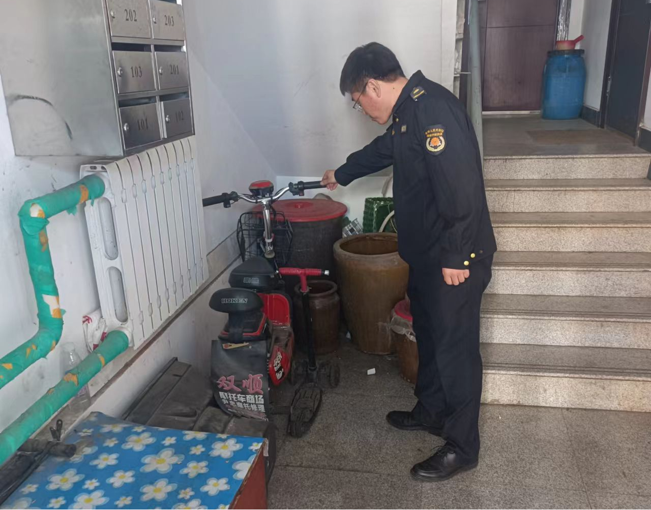 在居民小區(qū)檢查過程中,發(fā)現(xiàn)樓道內(nèi)有違規(guī)停放電動自行車,擺放易燃雜物現(xiàn)象。已通知洪信物業(yè)公司立即整改,發(fā)布通知,組織員工開展清理。鎮(zhèn)政府定于4月下旬聯(lián)合鎮(zhèn)公安派出所、鎮(zhèn)綜合行政執(zhí)法局、平安建設(shè)辦,對整改情況進行閉環(huán)檢查。
