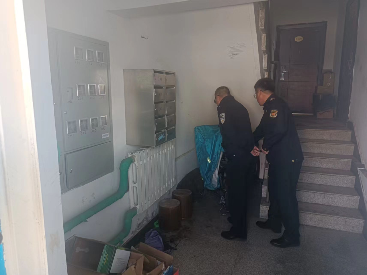 工作組一行在物業(yè)公司工作人員協(xié)助下,排查阿依罕小區(qū)34個(gè)單元。檢查重點(diǎn)是小區(qū)內(nèi)防火通道是否暢通,有無(wú)居民私搭亂建現(xiàn)象以及樓道內(nèi)樓梯間違規(guī)擺放雜物。在排查過(guò)程中,共清理樓道內(nèi)放置電動(dòng)自行車5輛、摩托車1輛、液化氣罐2個(gè)。工作組要求物業(yè)公司開展后續(xù)樓道內(nèi)雜物清理工作,樓道內(nèi)放置報(bào)廢電器、汽車輪胎、家具等雜物,加大發(fā)生生命財(cái)產(chǎn)損失的危害。