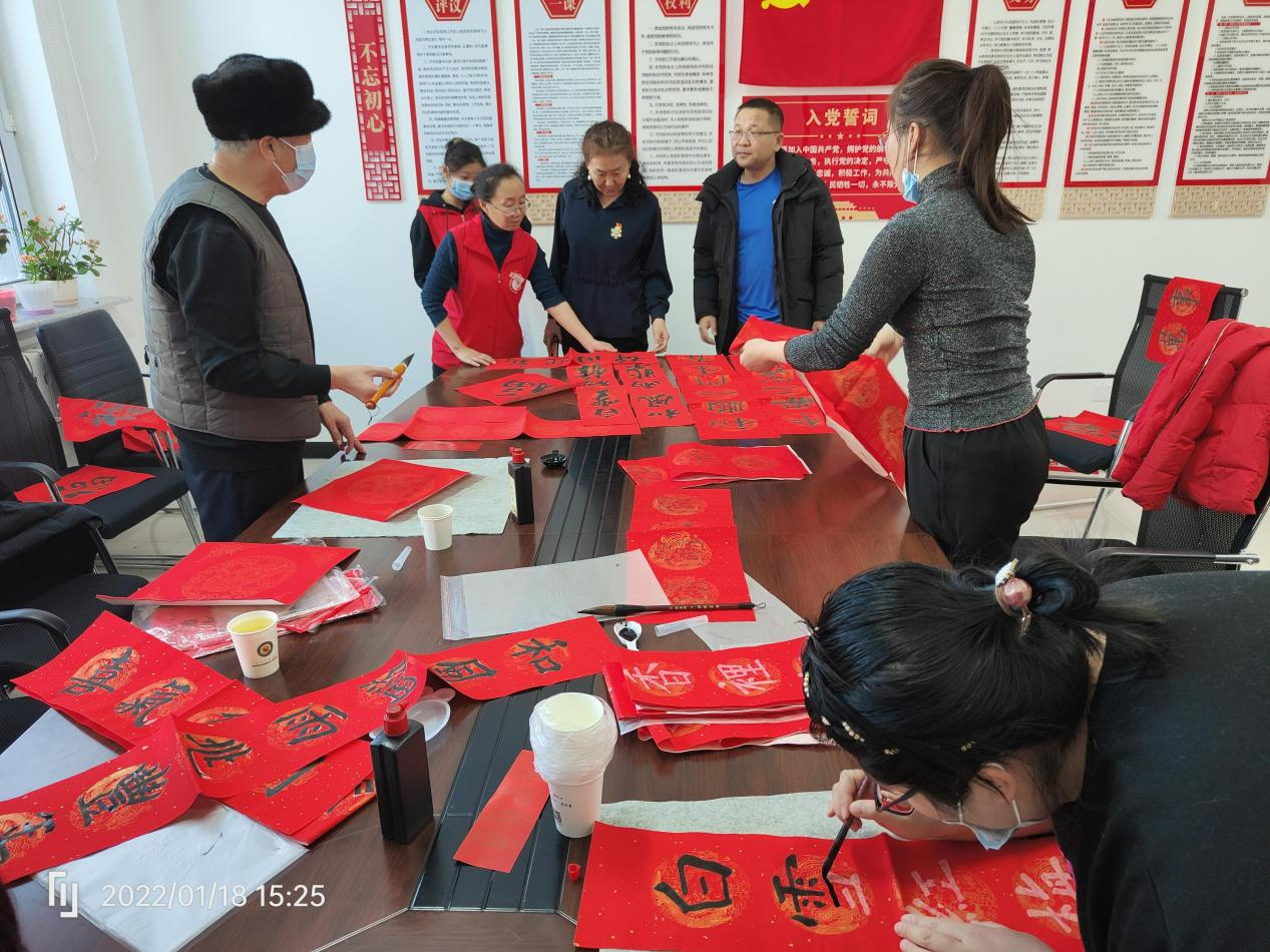 春節(jié)的腳步臨近,為弘揚(yáng)傳統(tǒng)文化,營造喜慶祥和的文化氛圍,2022年1月18日下午,社區(qū)工作人員及志愿者在安園社區(qū)黨員活動(dòng)室開展迎新春寫對聯(lián)送祝?;顒?dòng)。