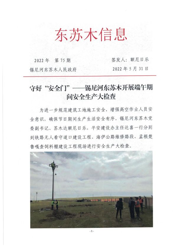 名稱: 守好“安全門”——錫尼河?xùn)|蘇木開展端午期間安全生產(chǎn)大檢查 文號: