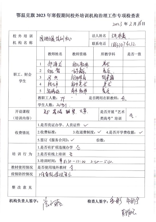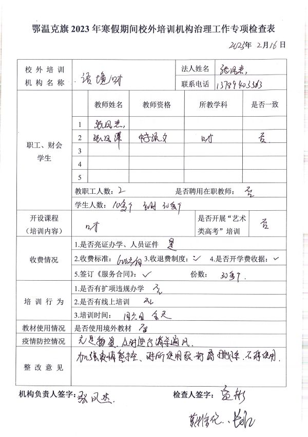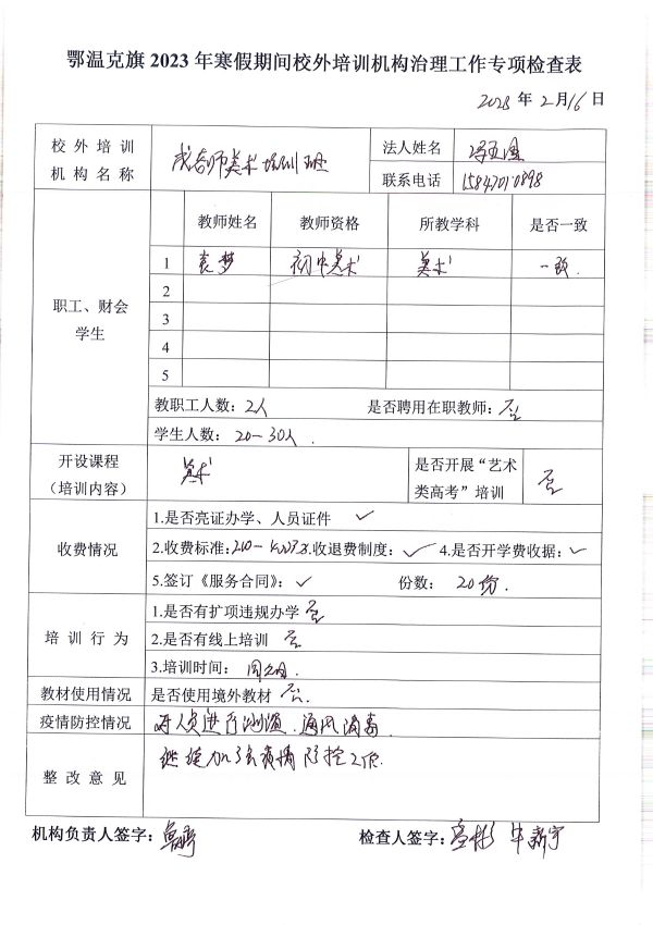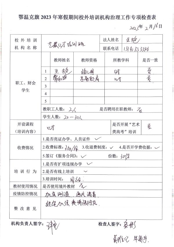 名稱: 2023年寒假期間校外培訓(xùn)機構(gòu)治理工作專項檢查 文號: