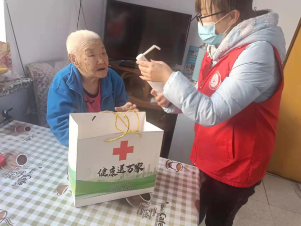 居民可在本社區(qū)領取“健康防疫包”。社區(qū)工作者為居民講解使用方法,普及疫情防控知識,并為行動不便老年人入戶發(fā)放,叮囑老人和家屬加強防護、科學防疫、合理用藥。