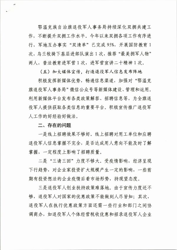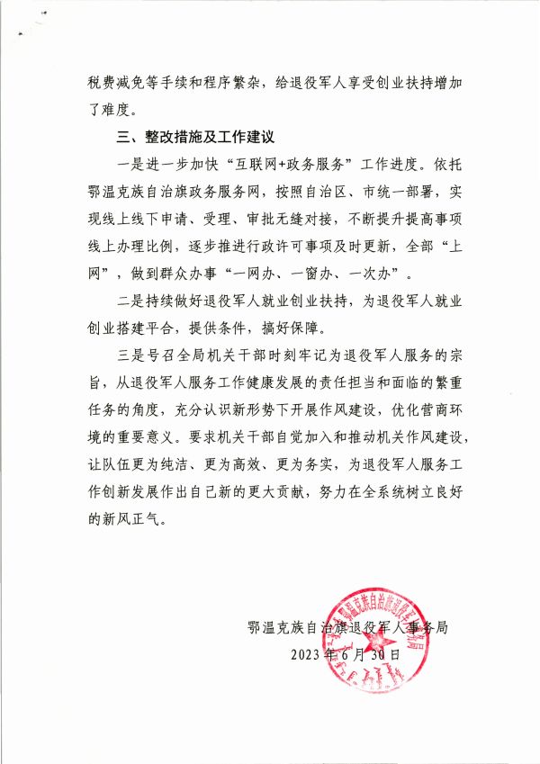 名稱: 鄂溫克族自治旗退役軍人事務(wù)局2023年度上半年優(yōu)化營商環(huán)境工作總結(jié) 文號: