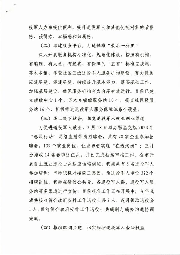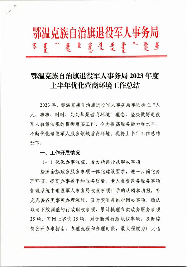 鄂溫克族自治旗退役軍人事務(wù)局2023年度上半年優(yōu)化營商環(huán)境工作總結(jié)