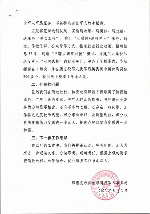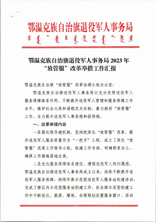 鄂溫克族自治旗退役軍人事務(wù)局2023年“放管服”改革舉措工作匯報