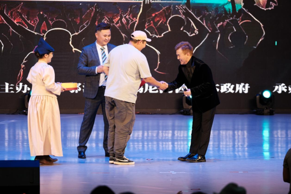 在演出中好力寶嘎查副書記其其格,副嘎查達白嘎拉代表好力寶嘎查委員會為丹德爾老師頒發(fā)了榮譽證書和獎杯,充分肯定了他10年以來對青少年的培育。