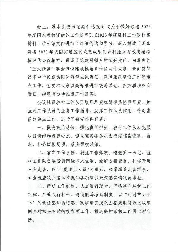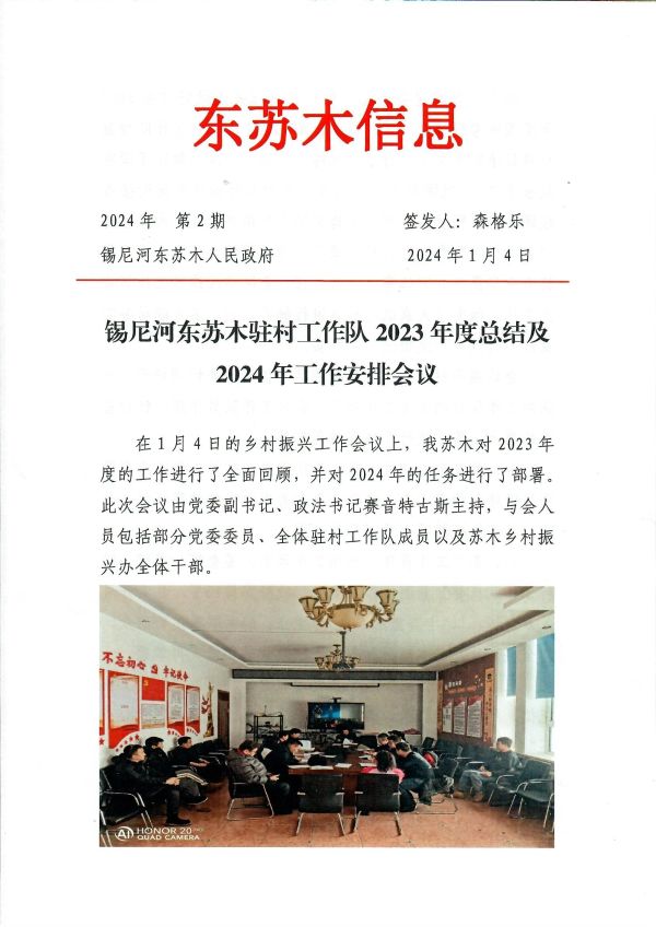 名稱: 錫尼河?xùn)|蘇木駐村工作隊(duì)2023年度總結(jié)及2024年工作安排會(huì)議 文號(hào):