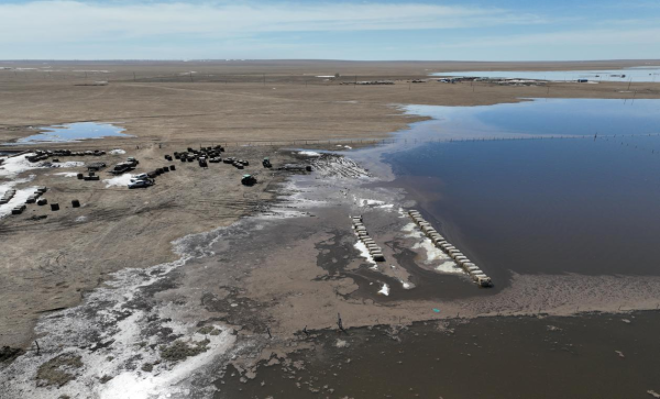 去冬以來(lái),本地區(qū)降雪量大,隨著氣溫轉(zhuǎn)暖,積雪在驟然升溫作用下,晝化夜凍,發(fā)生融雪性洪水,河道水位上漲,雪融水在短時(shí)間內(nèi)涌上了水泥路及鄉(xiāng)間砂石路,對(duì)低洼地段及沿線居牧民造成房屋過(guò)水被淹、被水圍困、棚圈過(guò)水淹沒坍塌、被雪融水浸泡的飼草等不同程度的損失,西博嘎查1處水泥路路基被水侵蝕掏空,出現(xiàn)安全隱患。