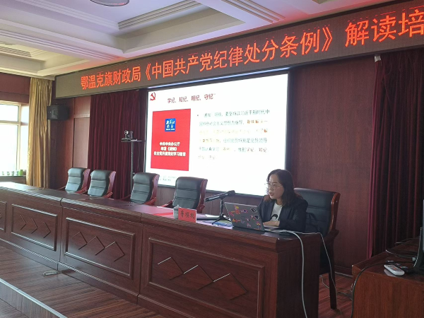 為扎實推進(jìn)黨紀(jì)學(xué)習(xí)教育深入開展,提高黨員干部黨性修養(yǎng),5月24日,鄂溫克族自治旗財政局聘請旗黨校魯櫻桃老師為全體黨員解讀《中國共產(chǎn)黨紀(jì)律處分條例》,旗財政局全體黨員干部參會。
