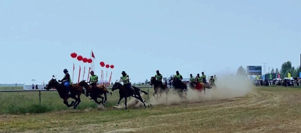 草原有多遼闊,駿馬就有多迅捷。賽馬場上,選手們手握韁繩,目光堅定、充滿斗志。隨著裁判的一聲令下,馬蹄起、塵飛揚,躍馬揚鞭與駿馬默契配合疾馳在廣袤草原。在觀眾們的陣陣喝彩和歡呼聲中,進行激烈角逐。他們仿佛與風并肩、與云賽跑。每一次沖刺,每一次超越,都讓人熱血沸騰。