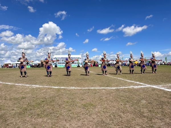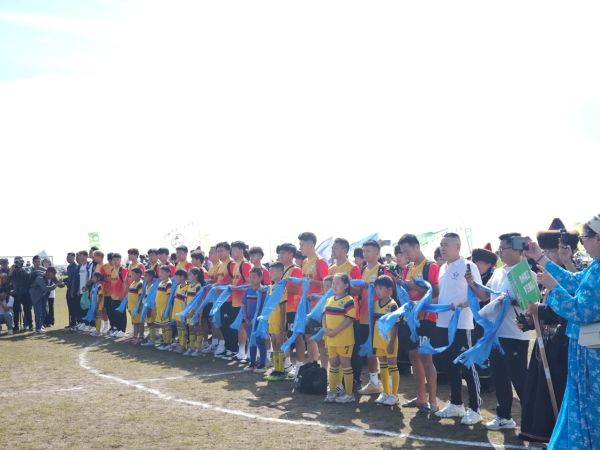 此次友誼賽不僅是一場(chǎng)體育競(jìng)技的較量,更是兩地民族文化交流與融合的橋梁。上午九點(diǎn)整,一場(chǎng)盛大的牧民馬隊(duì)歡迎儀式拉開序幕,牧民身著傳統(tǒng)服飾,策馬奔騰,歡迎遠(yuǎn)方來的客人。隨后,來自錫尼河?xùn)|、西蘇木和呼倫貝爾市的文藝團(tuán)隊(duì)為遠(yuǎn)道而來的客人和現(xiàn)場(chǎng)觀眾帶來了精彩的開場(chǎng)表演,并為球員們獻(xiàn)上哈達(dá),瞬間“點(diǎn)燃”了現(xiàn)場(chǎng)氛圍。