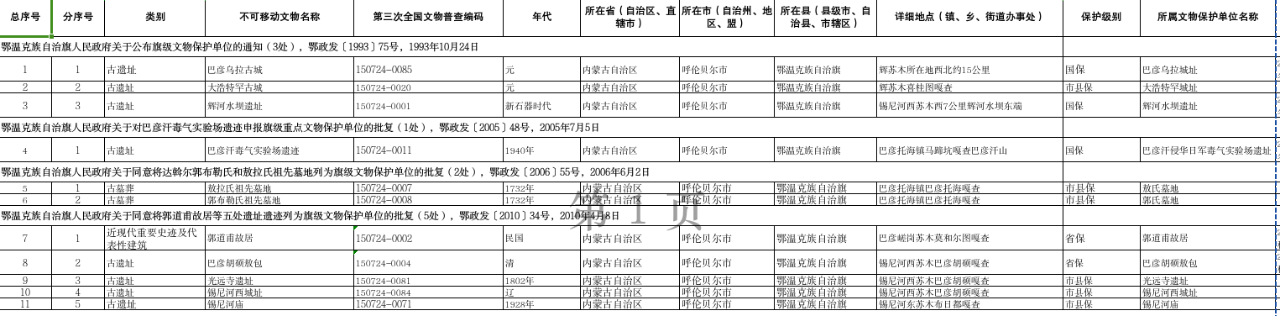 名稱: 鄂溫克族自治旗文博單位名錄 文號(hào): 無(wú)