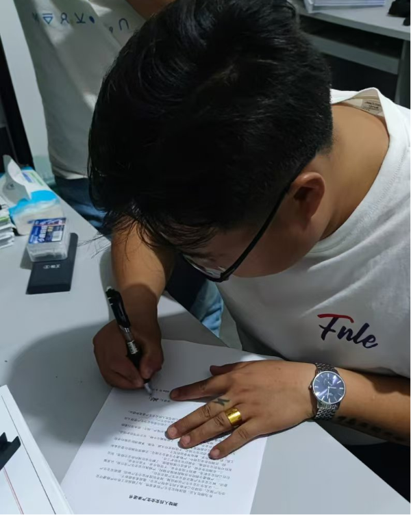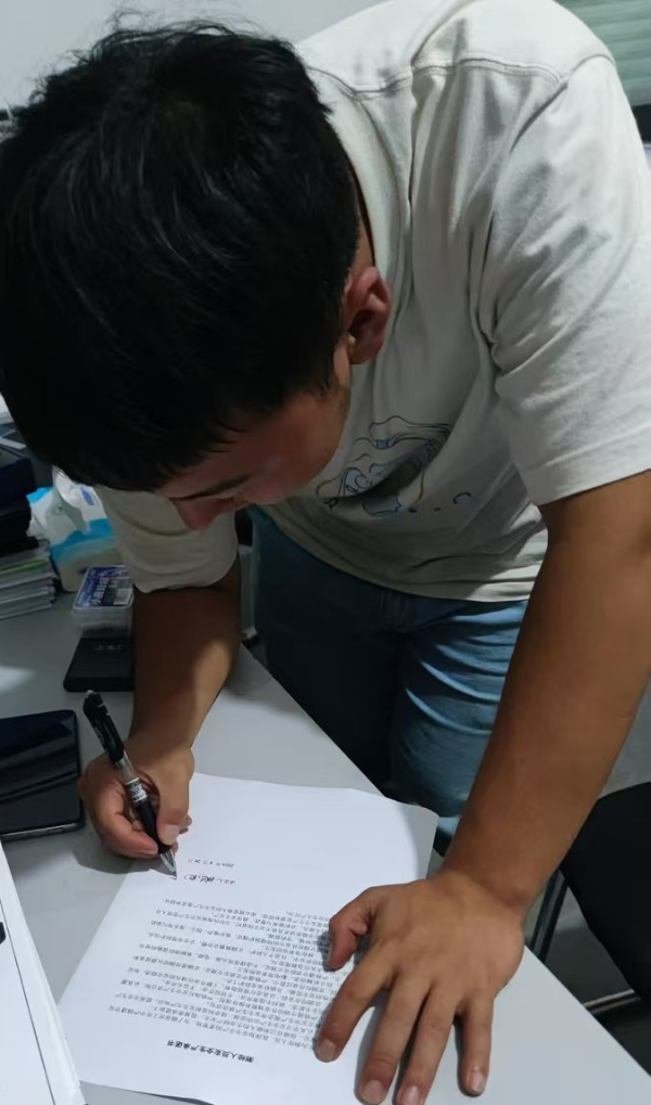 隨后,該測繪公司工作人員簽訂了《安全生產(chǎn)承諾書》。該承諾書共分為九項,分別從安全生產(chǎn)目標、貫徹執(zhí)行法律法規(guī)、單位日常管理工作、嚴格落實責(zé)任主體、完善機構(gòu)設(shè)置和規(guī)章制度、加強日常監(jiān)管理力度、明確隱患治理措施、做好外業(yè)管理、重視教育培訓(xùn)等多個方面,全方位明確了測繪人員需要注意的安全生產(chǎn)事項。