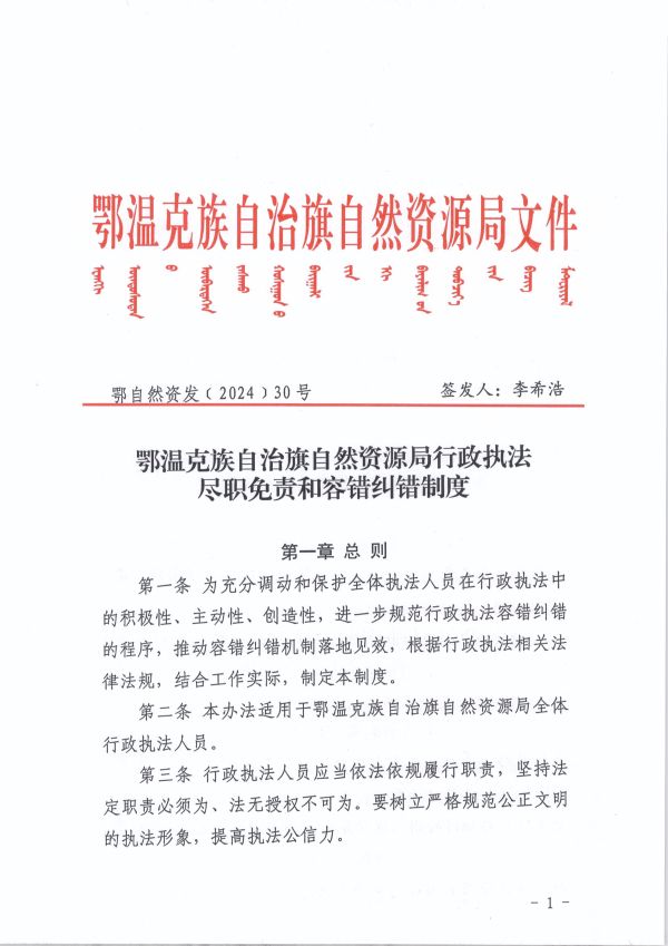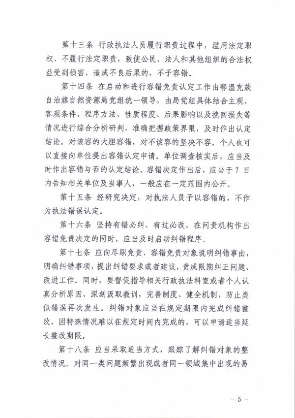 鄂溫克族自治旗自然資源局行政執(zhí)法盡職免責(zé)和容錯(cuò)糾錯(cuò)制度
