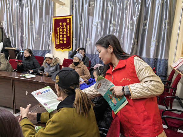 志愿者為前來(lái)參會(huì)家長(zhǎng)逐一發(fā)放反邪教雙語(yǔ)內(nèi)容包括國(guó)家處理邪教法律法規(guī),以及怎樣防范和抵制的宣傳材料,并用民族語(yǔ)言向老師和家長(zhǎng)講解,呼吁大家在日常生活中堅(jiān)決做到不聽(tīng)、不信、不傳、不參與邪教,積極引導(dǎo)家長(zhǎng)師生參與到反邪教宣傳活動(dòng)中來(lái),共建和諧社會(huì)。