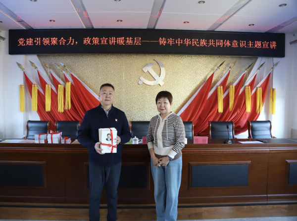 活動(dòng)最后,紅梅主任向巴彥嵯崗蘇木贈(zèng)送黨的民族理論政策和法律法規(guī)相關(guān)書(shū)籍,旨在廣泛宣傳黨的民族理論政策和法律法規(guī),充分發(fā)揮圖書(shū)閱讀的優(yōu)勢(shì)和作用,緊扣鑄牢中華民族共同體意識(shí)這條主線,發(fā)揮民族法治宣傳角等文化主陣地的作用和社會(huì)教育功能,聯(lián)合蘇木鄉(xiāng)鎮(zhèn)合力做好鑄牢中華民族共同體意識(shí)宣傳教育工作。