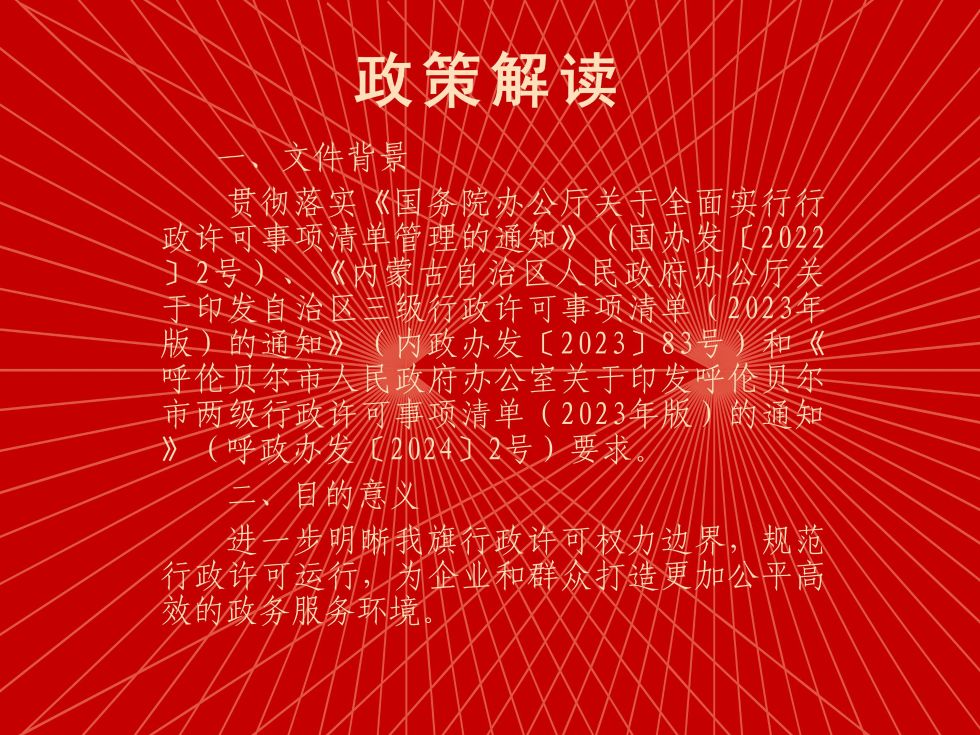 【文字解讀】關(guān)于印發(fā)《鄂溫克族自治旗行政許可事項清單(2023年版)》的通知