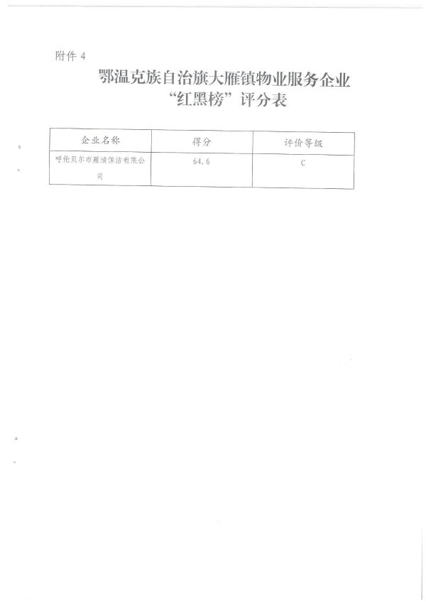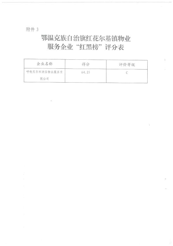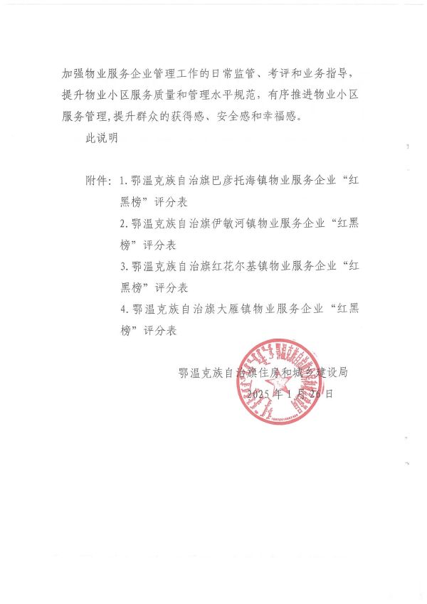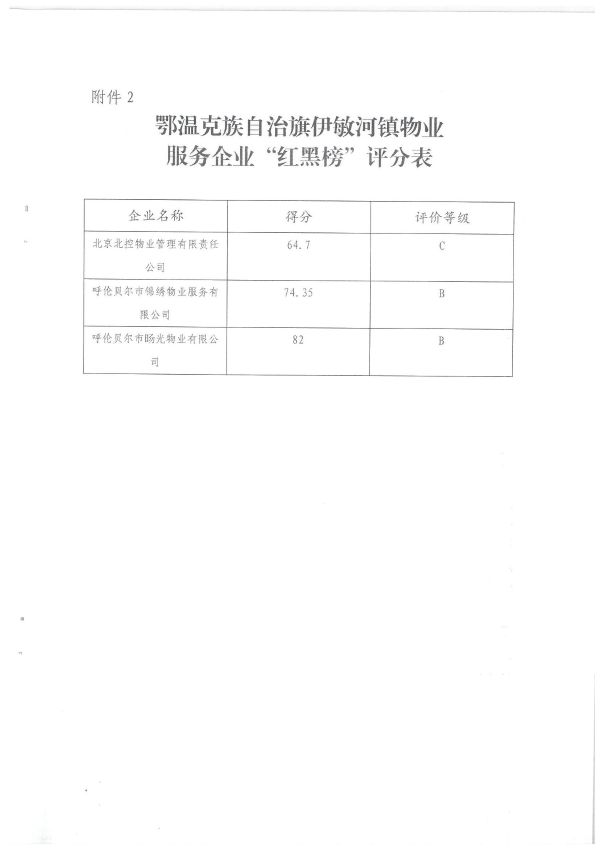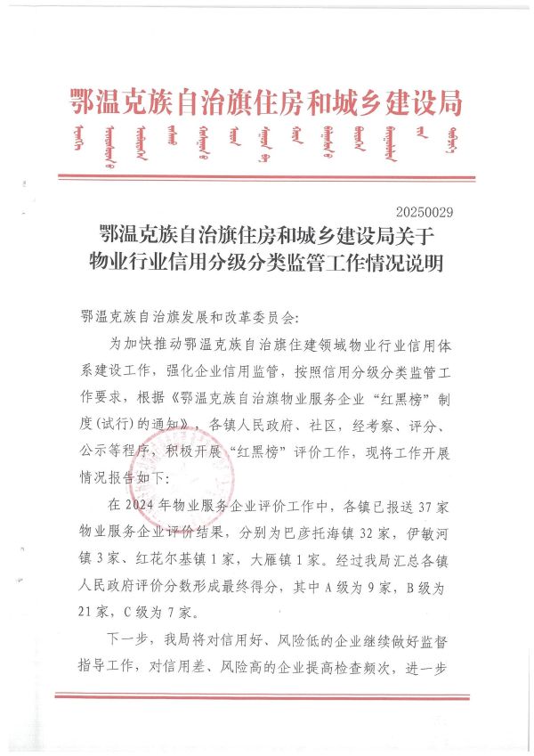 鄂溫克族自治旗住房和城鄉(xiāng)建設(shè)局關(guān)于物業(yè)行業(yè)信用分級(jí)分類監(jiān)管工作情況說明