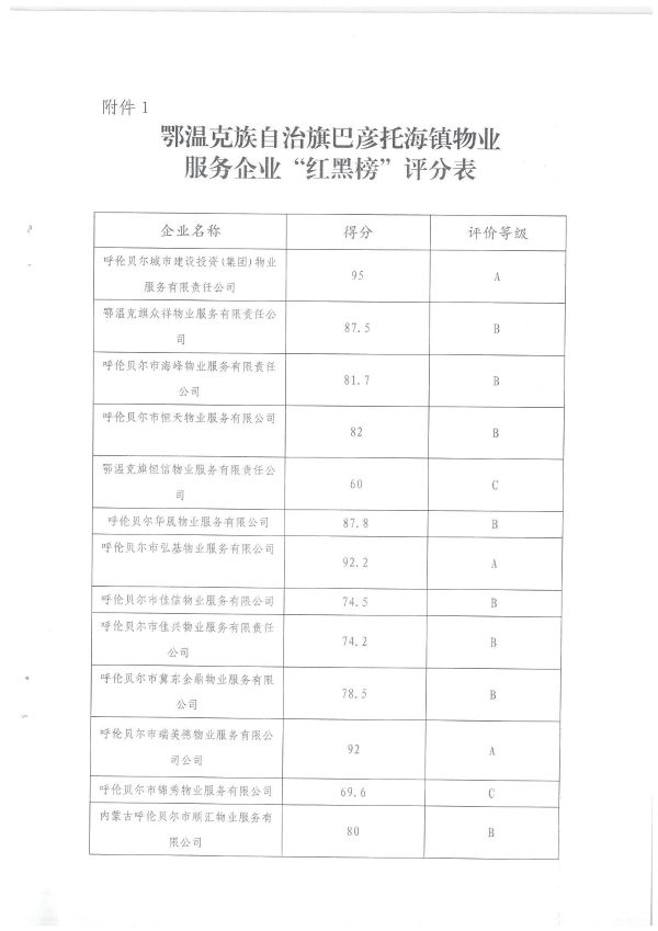 名稱: 鄂溫克族自治旗住房和城鄉(xiāng)建設(shè)局關(guān)于物業(yè)行業(yè)信用分級(jí)分類監(jiān)管工作情況說明 文號(hào):