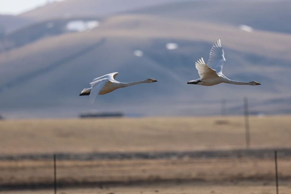 (圖為近期工作人員在莫和爾圖國家濕地公園及周邊區(qū)域開展鳥類監(jiān)測工作中觀測到的國家二級保護動物大天鵝。)
