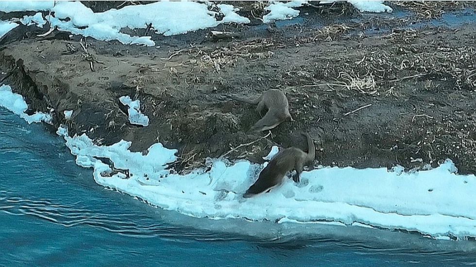(圖為4月2日維納河林場護林員在防火巡護中,拍到的兩只國家二級保護野生動物水獺。)