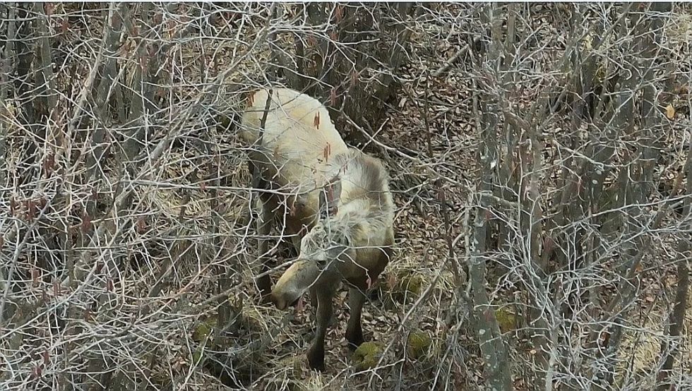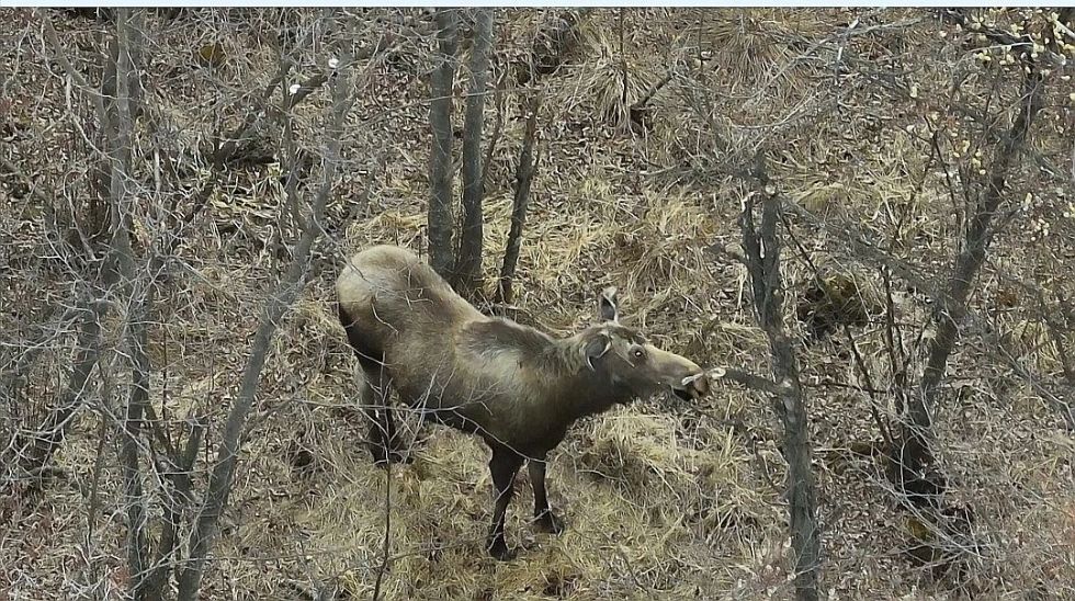 (圖為4月28日維納河林場禁牧休牧及防火巡查流動工作組巡護中拍攝到的國家一級保護動物駝鹿,即犴。)
